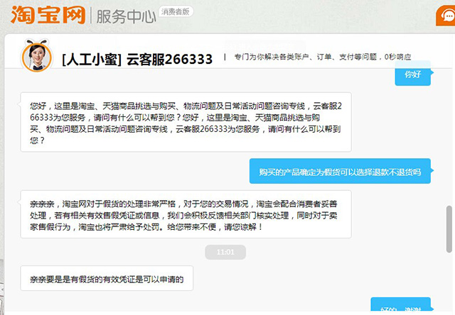 例如:大家常去的某寶網就明確表示購買的產品懷疑是假貨可以退貨。購買的產品確定為假貨,可以退款不退貨。
