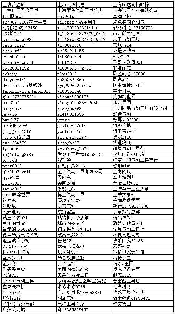 淘寶網(wǎng):(本月272條,累計(jì)405條)以下為刪除的 旺旺ID