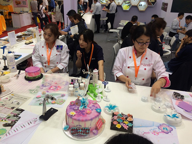 現場老師利用巖田新槍‘DECO Air噴槍’裝飾蛋糕,設計出獨一無二的蛋糕,吸引了廣大有興趣的客戶駐足觀看。