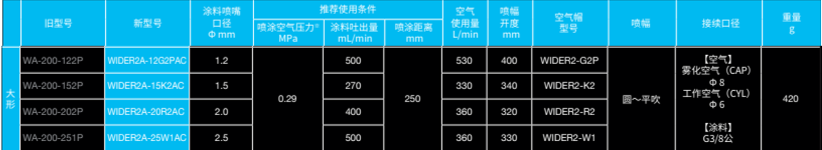 在工業(yè)涂裝產(chǎn)品最重要的是【品質(zhì)和穩(wěn)定性】。針對(duì)多用途和進(jìn)行化的涂料,我們制造出了最適應(yīng)這種變化的最合適的噴槍。WA-101上市至今已有14年、WA-200上市至今已有23年,從那時(shí)起積累的經(jīng)驗(yàn)全部?jī)A注于“WIDER”上。從庸俗的設(shè)計(jì)到錘煉過的精益設(shè)計(jì),提升了維護(hù)性能進(jìn)而了更高品質(zhì)的新一代噴槍。