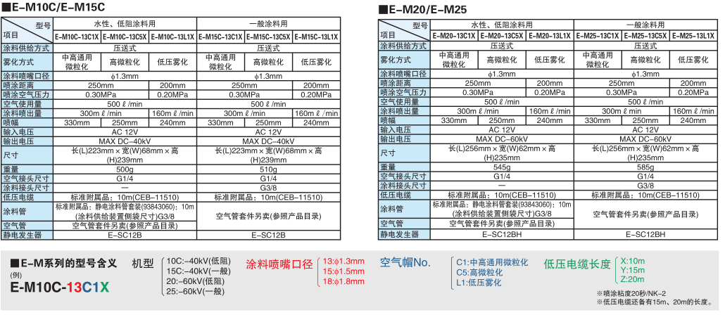 靜電空氣手動噴槍(直接帶電內(nèi)部升壓型)E-M系列