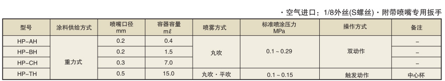 ·標(biāo)配的“空氣調(diào)節(jié)旋鈕”可進(jìn)行微量調(diào)節(jié)空氣量。 ·標(biāo)配的“預(yù)設(shè)旋鈕”可進(jìn)行微量調(diào)節(jié)涂料吐出量。 ·可實(shí)現(xiàn)從精細(xì)噴線到模糊、石紋風(fēng)格噴幅的特殊效果。 ·使用了耐溶劑性優(yōu)異的針墊片。 ·標(biāo)準(zhǔn)配備便于分解沖洗的按鈕針夾頭。