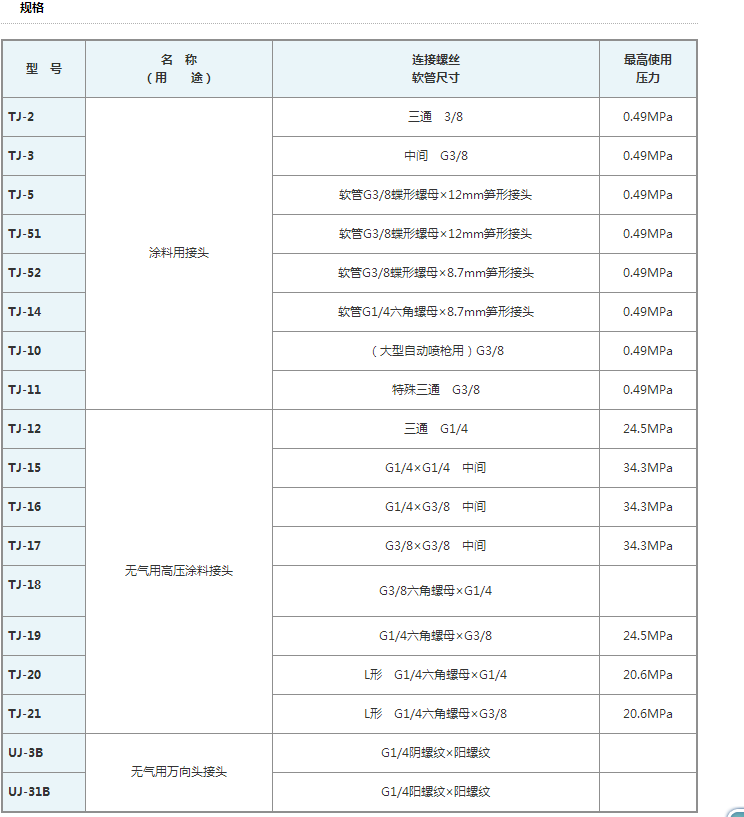 涂料和空氣供給用接頭。