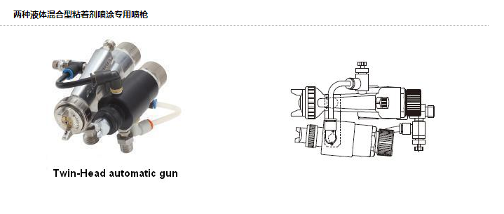 ·兩種液體混合型粘著劑噴涂專用噴槍 ·銀鏡噴涂特殊噴槍 ·兩種液體混合型粘著劑噴涂專用自動(dòng)噴槍