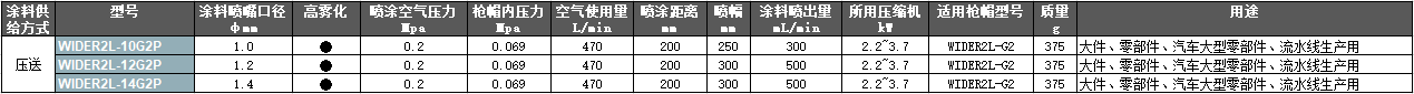 壓送式 WIDER2L-12G2P ???大件零部件,車輛等大件涂裝用 ①噴涂效率高,與以前機器相比,涂料使用量可節約20~30%(本公司